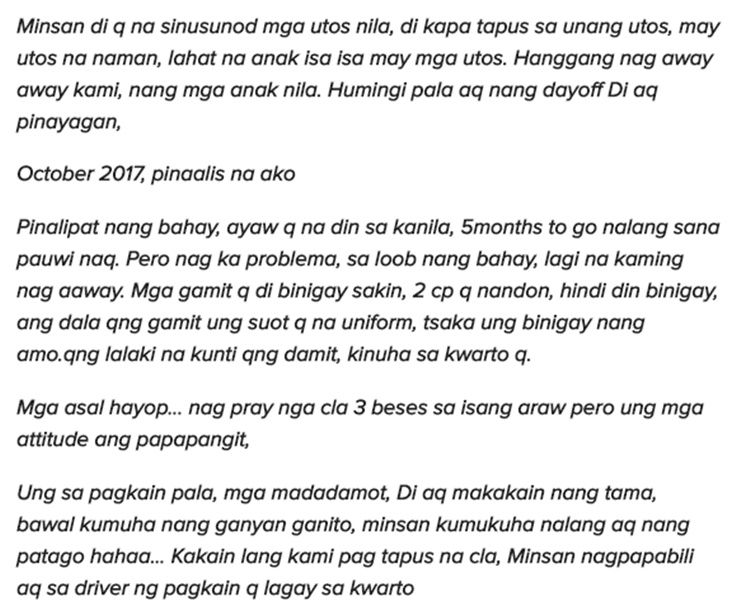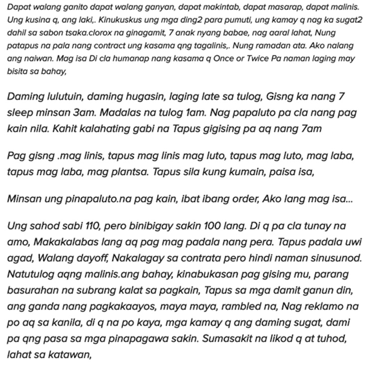 Here is the story of an OFW about all the hardships she experience in the hands of her employers that she had to bear just to provide for her family